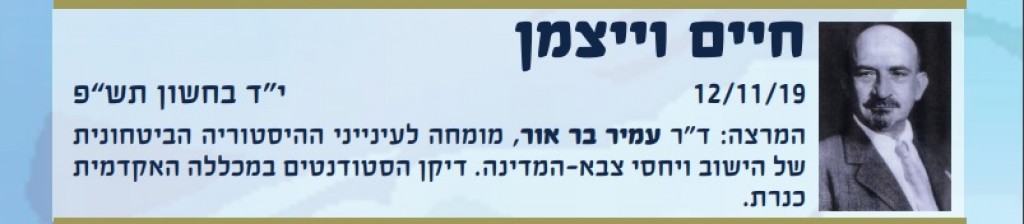 המרצה- ד"ר עמיר בר אור מומחה ההיסטוריה הביטחונית של היישוב ויחסי צבא- מדינה . דיקן הסטודנטים במכללה האקדמית כנרת