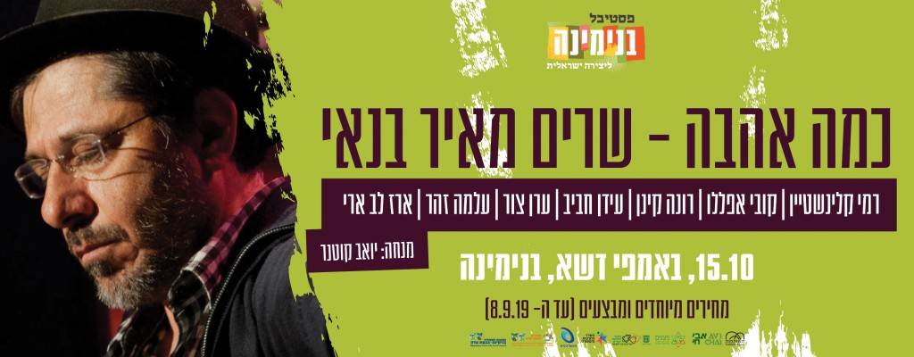 כמעט שלוש שנים לאחר פטירתו של זמר הנשמה מאיר בנאי ז"ל נעלה עם הפקת מקור מיוחדת ומרגשת לפסטיבל בנימינה ליצירה ישראלית במופע "כמה אהבה - שרים מאיר בנאי".