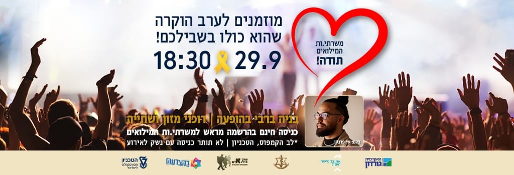 הכניסה בחינם בהרשמה מראש למשרתי ומשרתות המילואים בלבד.