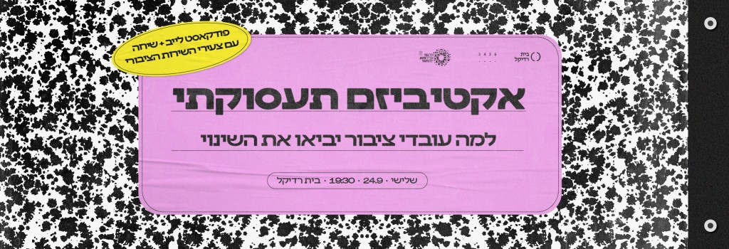 ביום שלישי: דאבל פיצ'ר! הקלטת לייב של הפודקאסט ״היסטוריה אינטלקטואלית גסה״, שבוחן את העבודה במגזר הציבורי כאקט אקטיביסטי + שיחה עם הצעירים והצעירות של המגזר הציבורי על איך זה נראה מבפנים.