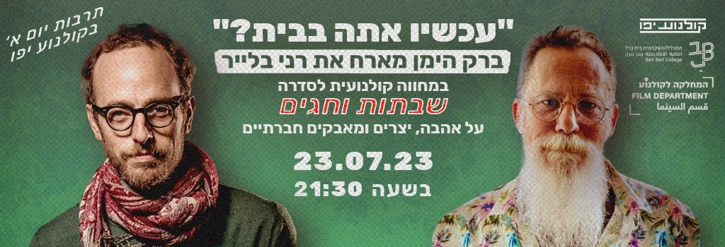 בואו לראות קטעים נבחרים מהיצירות של רני וברק ולדבר איתם על הקשר בין קולנוע טלוויזיה והמאבק לצדק חברתי.