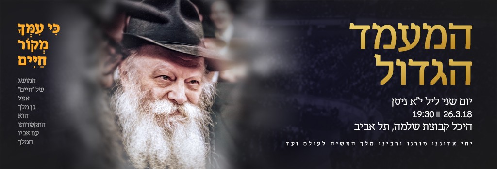 האירוע יתקיים ביום שני אור לי"א ניסן ה'תשע"ח (26.03.2017) בהיכל קבוצת שלמה - תל אביב.