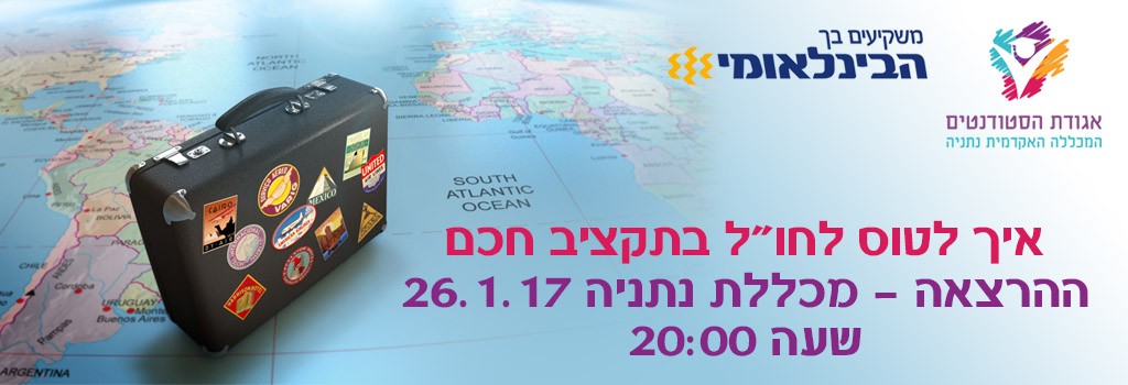 ההרצאה תתקיים ב 26/1/17 בשעה 20:00 במכללת נתניה אולם תשובה, רח' האוניברסיטה 1, נתניה.