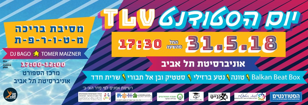 The biggest student festival in the country, with over 40,000 students, will take place on Thursday, 31st of May, starting at 12:00, on the Tel Aviv University campus.