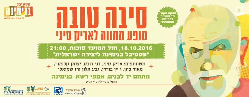 אריק סיני יחגוג 40 שנות קריירה במופע מיוחד וחד פעמי ביום שלישי 18.10.16 בשעה 21:00, ערב הפתיחה של פסטיבל בנימינה ליצירה ישראלית.