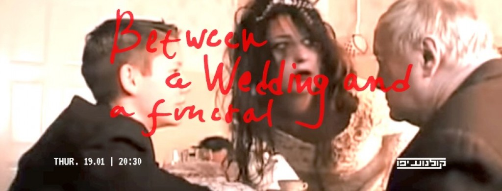 בין חתונה ללוויה, ערב הקרנות סרטים קצרים ווידאו ארט בשיתוף פעולה עם קולנוע יפו, עוסק במצבים לימינליים, טקסיים, שבין חתונה ללוויה וייצוגיהם בשדה הקולנוע, הווידאו ארט, והמרחב המרובד שבין השניים. ההרצאות והעבודות יעסקו בנורמות יומיומיות ופעולות חתרניות מבחינה חברתית והופכיות מבחינה טקסית.בתקופה זו של שינויים ממאירים, אי ודאות והיסוס, תקופה של פוסט-מצב המתנה הנמתח לאין שעור, בו אנו מוצאים עצמנו באזור אשר מופקע מהריתמוס הרגיל של החיים, לכודים בתוך פורנוגרפיה פוליטית ודרמה חברתית, אנו מאמינות כי פעולת השהייה היא נחוצה ואינטגרלית.הערב ׳בין חתונה ללויה׳ - פועל כרפלקסיה וכתגובה לעת העכשווית מתוך עולמות התרבות בהן אנו נעות - הקולנוע והוידאו ארט.